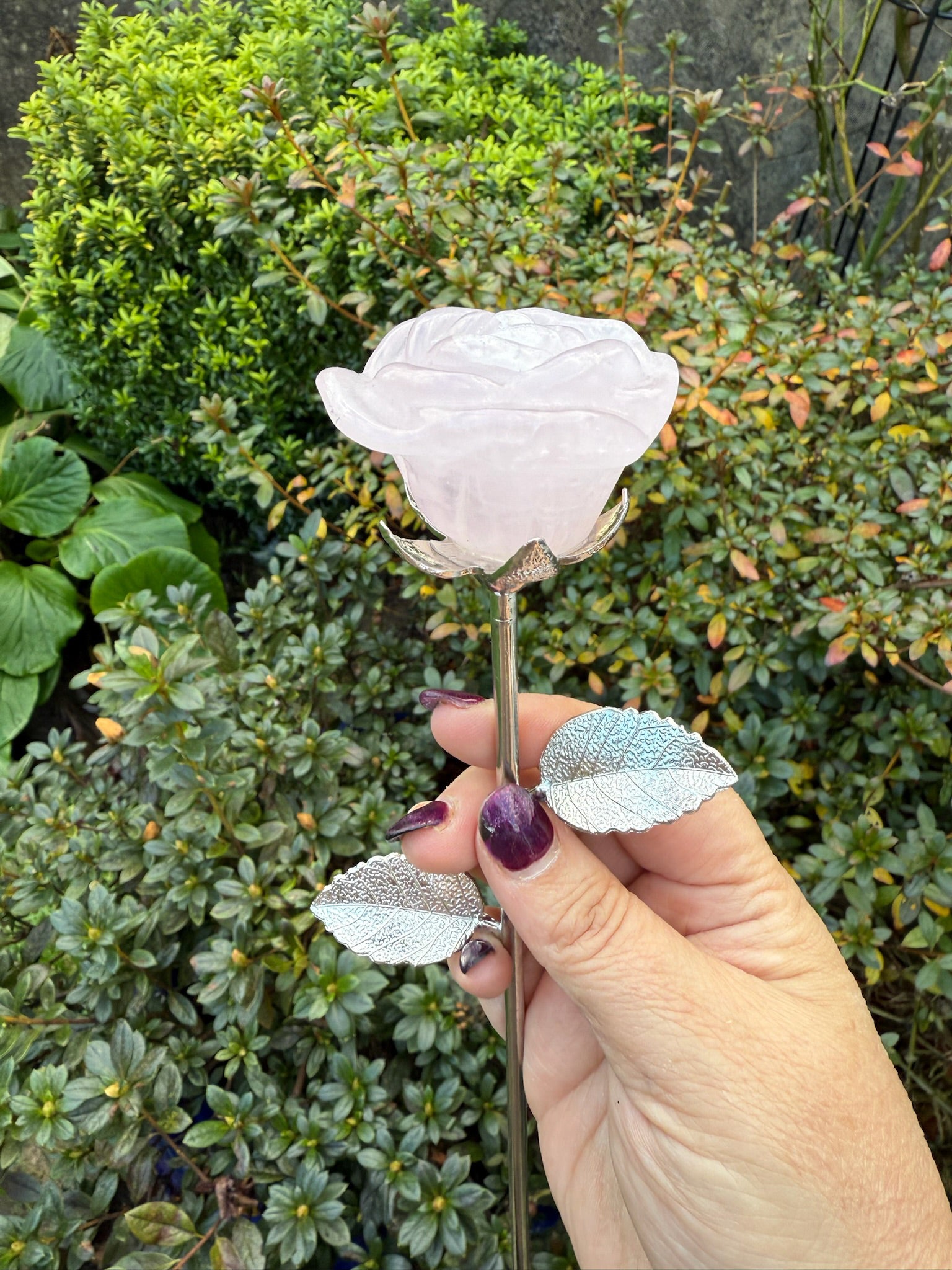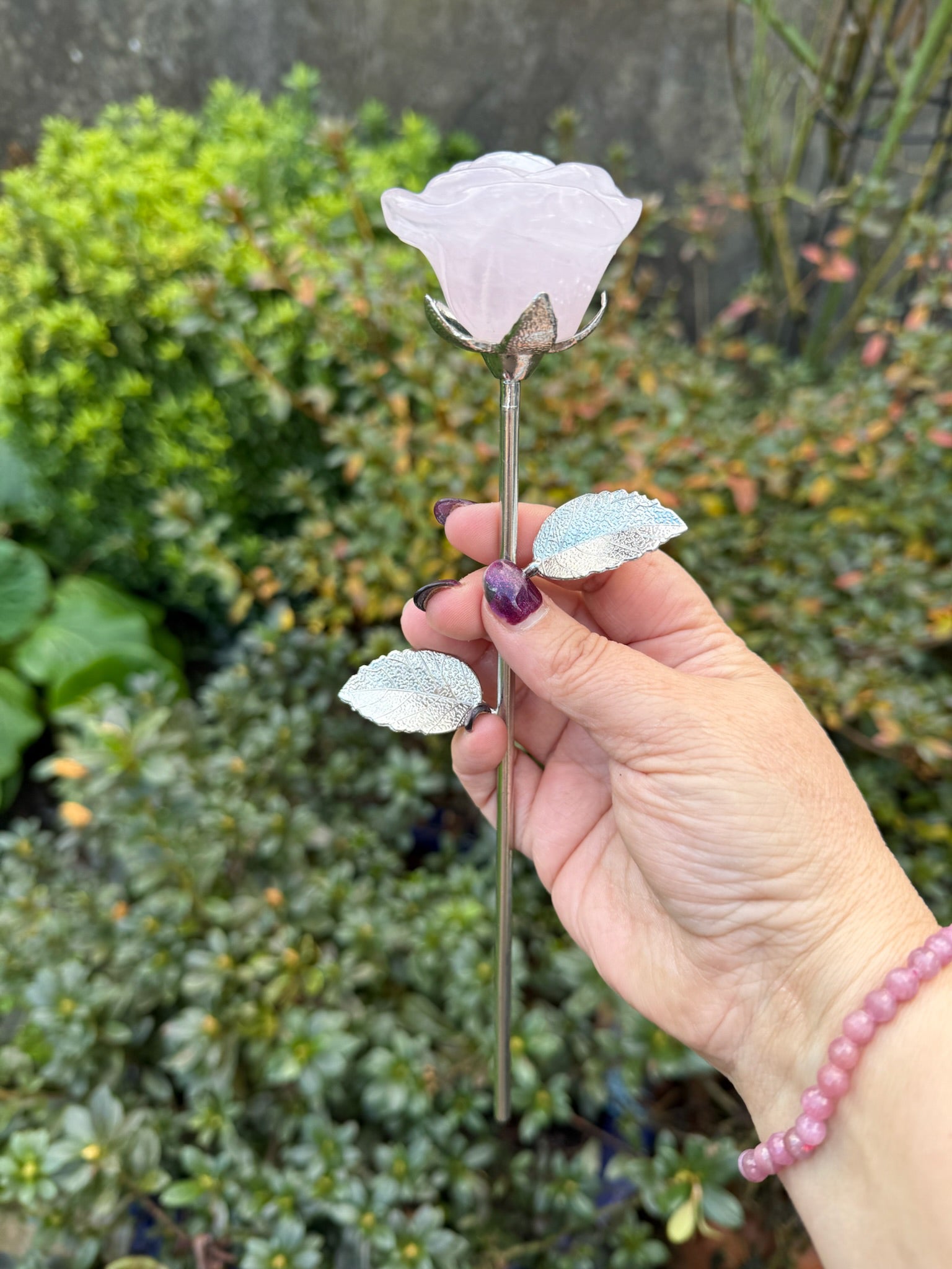 Rose Quartz Rose on Silver Coloured Stem