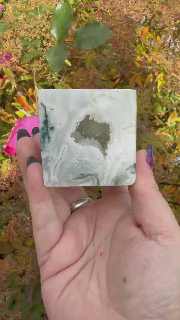 Material: Moss AgateOrigin: MadagascarSize: 5cm x 5cm x 5cm CubeWeight: 314g