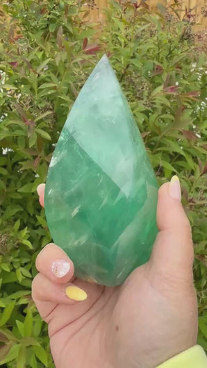 Large Green Fluorite Flame Freeform Carving