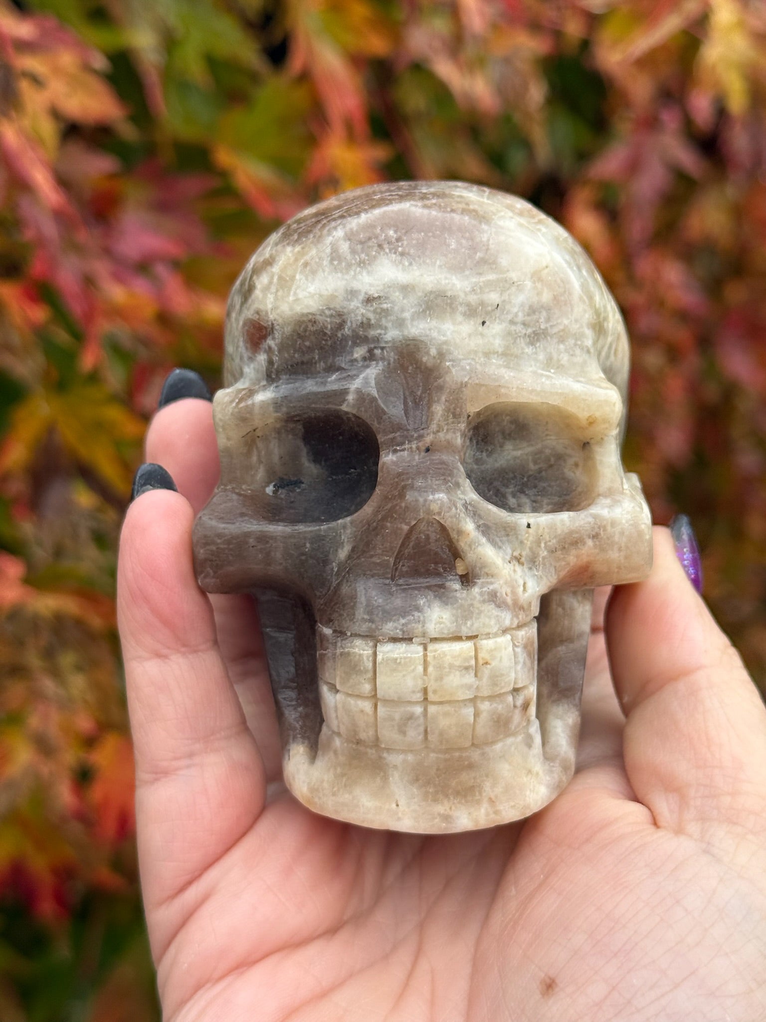 Moonstone and Sunstone Skull Carving