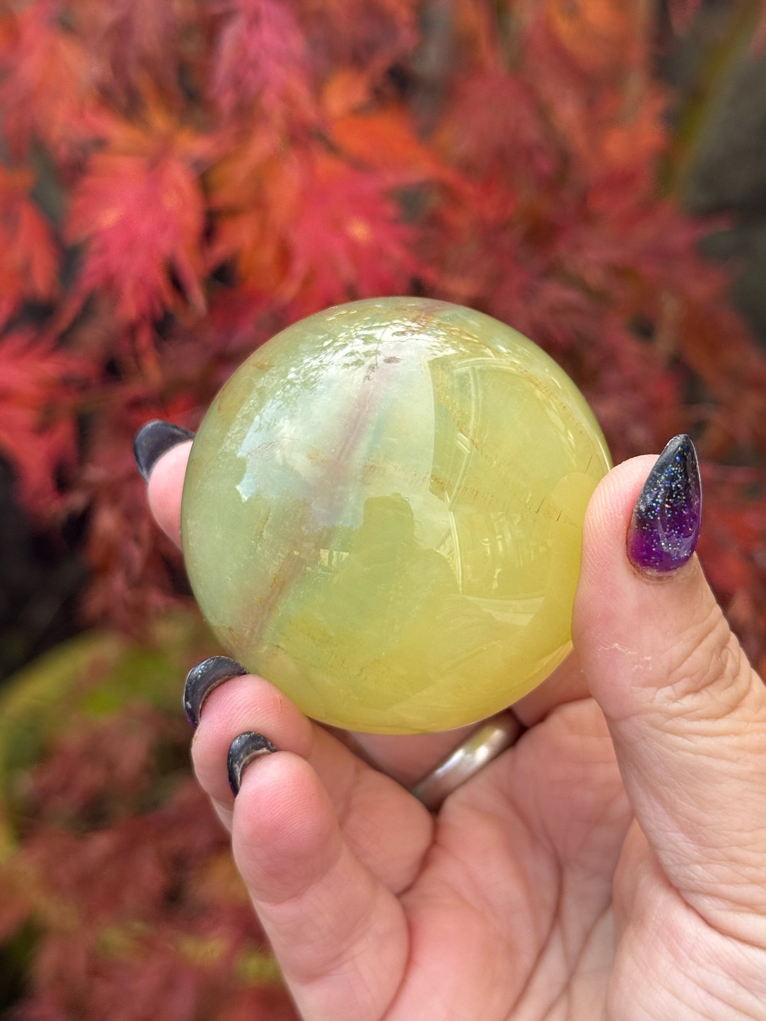 Banded Mango Fluorite Sphere 5.2cm Diameter